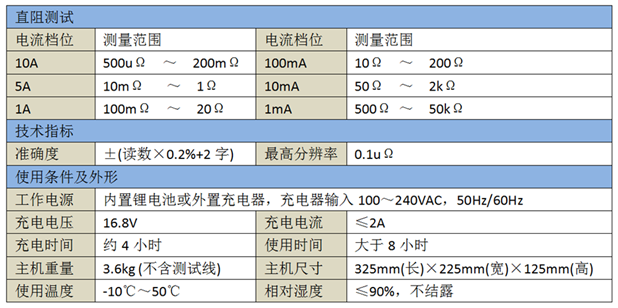 锂电池供电或者220V交流供电自适应,一次充电,可连续进行上百台变压器直流电阻测试,测试过程简单、方便。